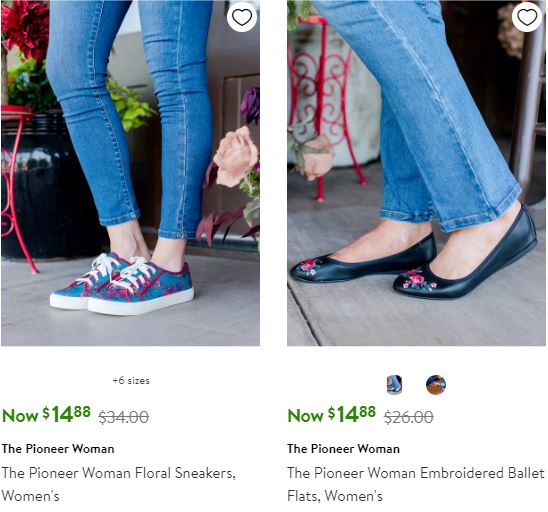 Right now at Walmart.com, grab the cutest colorful shoes at a great price! They’re offering clearance prices on select The Pioneer Women shoes and prices start at just $5!