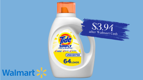 For a limited time, Walmart has a great deal on Tide detergent. Get Tide Simply Free & Sensitive Detergent 92 oz for $3.94 after Walmart Cash!