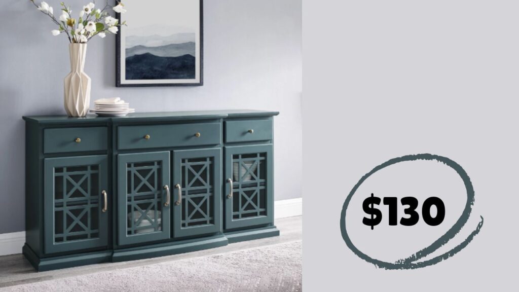 Classic Tiered-Front Glass Door Dark Teal Fretwork Sideboard – $129.99 (reg. $404)