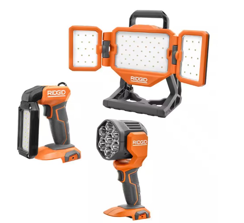 18V Cordless 3-Tool Combo Kit with LED Stick Light, LED Spotlight, and LED Hybrid Panel Light – $119 (reg. $288)