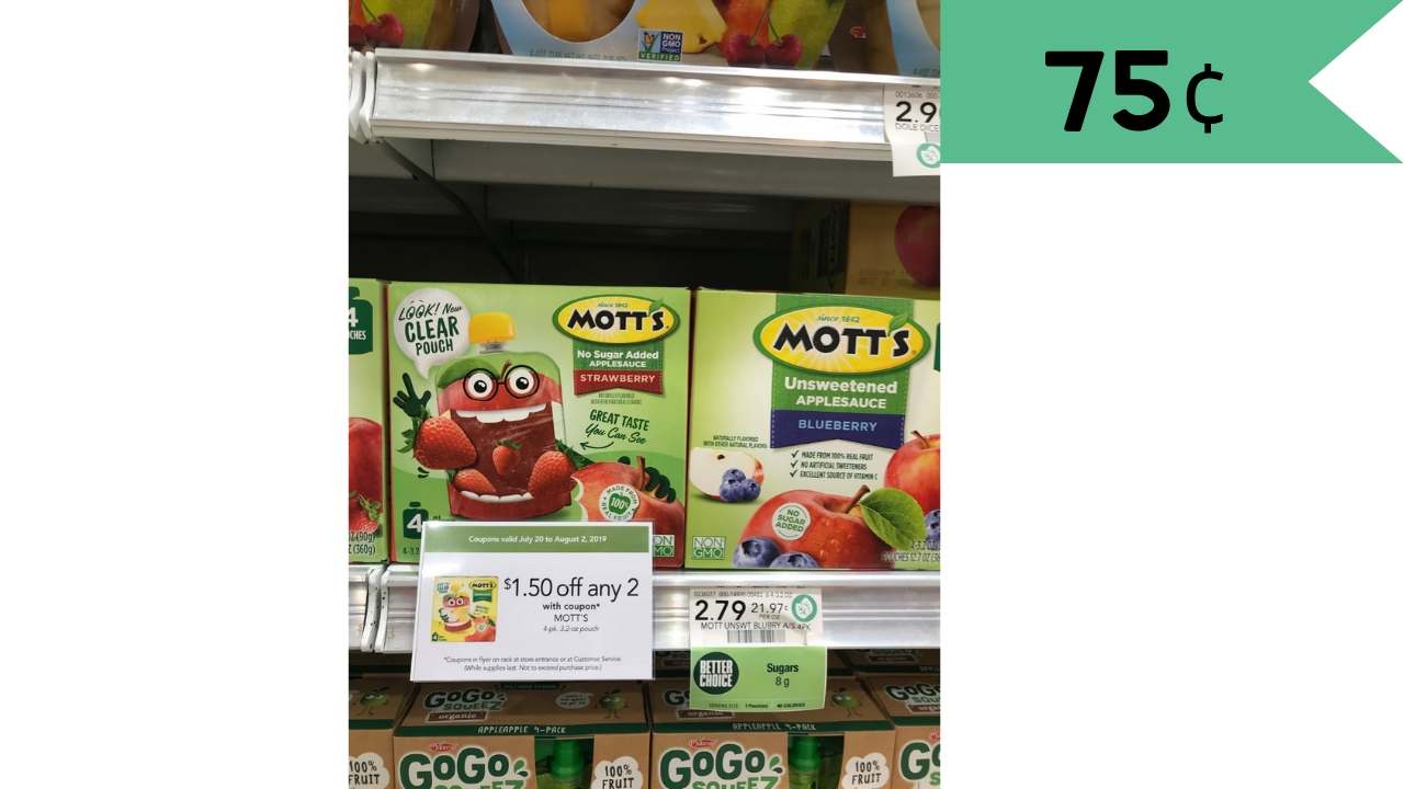 Starting tomorrow (Thursday in FL) you can stack a manufacturer and store coupon to pick up Mott’s apple sauce for just 75¢ at Publix!