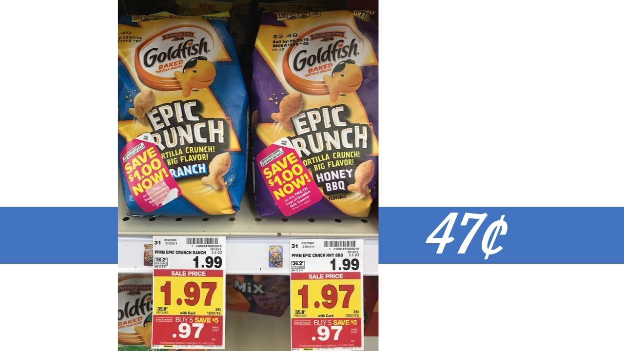 Grab at great deal on Goldfish Epic Crunch crackers at Kroger with a coupon on select products! Look at your store for a coupon and get them for 75% off.