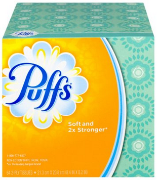 -.25/1 Puffs facial tissue, 64 sheets or smaller, excl To Go 10 ct. & trial/travel size printable