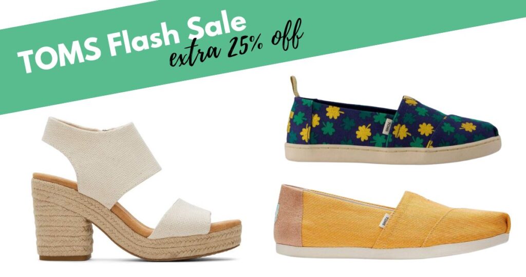 It’s a Toms Flash Sale! Enjoy 25% off hundreds of shoe styles for Women, Men, and Kids…in addition to sunglasses, socks, and more!
