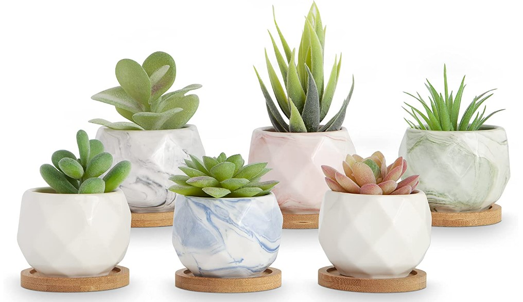 Set of 6 Mini Pots with Saucers – $21.96 (reg. $29.90)