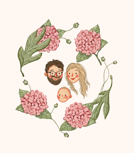 Floral Custom Portrait In A Wreath Starting at $18.39