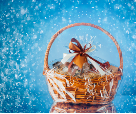 Find a basket at the dollar store and fill it with goodies: coffee, a mug, tea bags, candy, some socks, etc.