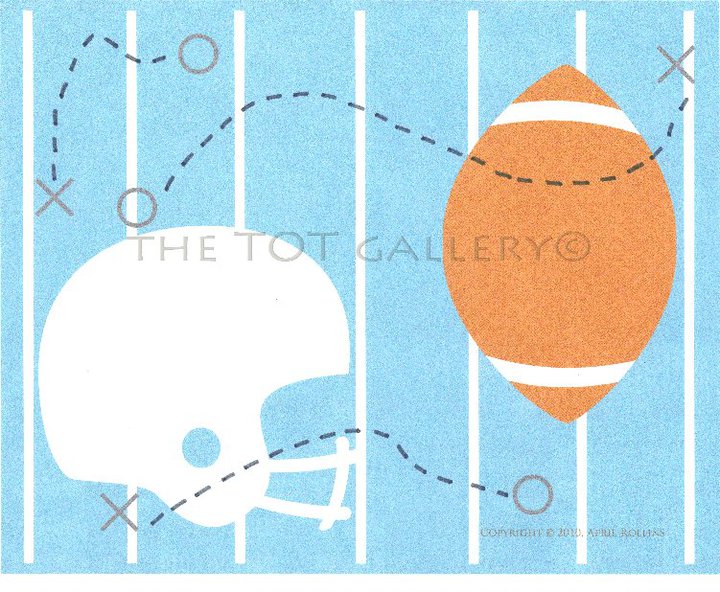 Her Facebook page contains albums for each series of prints. There are usually 2-5 prints per series, all following the same theme. For example, pictured above is one print from both the Football series and the Vintage Plane series. When she posts them on Facebook, she includes fun decorating ideas to create a room around her print series’ theme.