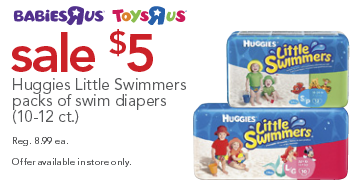 Babies R Us and Toys R Us has a great Huggies Little Swimmers deal! They are on sale for $5 a 10-12 ct. pack.