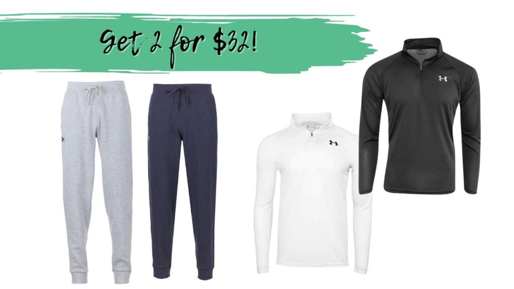 Here are a couple of nice Under Armour deals for the men. Proozy is offering 2 for $32 Fleece Joggers and 1/2 Zip Pullovers plus free shipping!