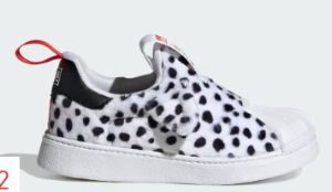 ADIDAS ORIGINALS X DISNEY 101 DALMATIANS SUPERSTAR 360 SHOES KIDS – $22 (reg. $55)