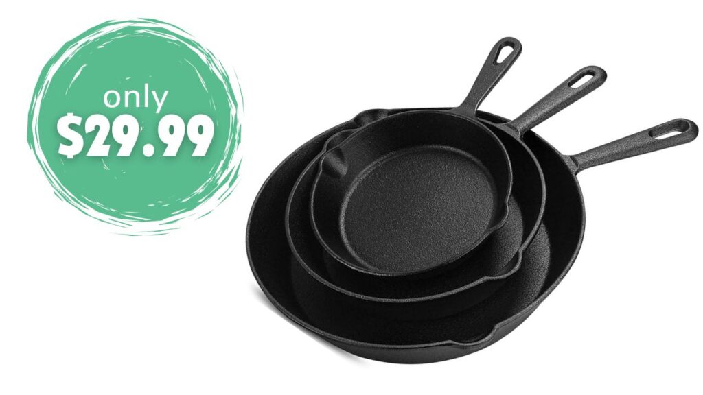Get a nice price on this Utopia Kitchen 3-Piece Pre-Seasoned Cast Iron Skillet Set at Amazon. It’s now on sale for only $29.99 (reg. $44.99)!