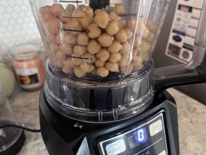 - Add the chickpeas to a food process or blender and blend as much as possible.