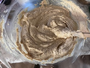 Now it’s time to thicken it up so you can actually form then into little balls. I used oat flour that I got on markdown at Kroger. If you don’t have oat flour, you can also use rolled oats by either processing them before hand into oat flour OR you can just use rolled oats as they are if the texture won’t bother you.