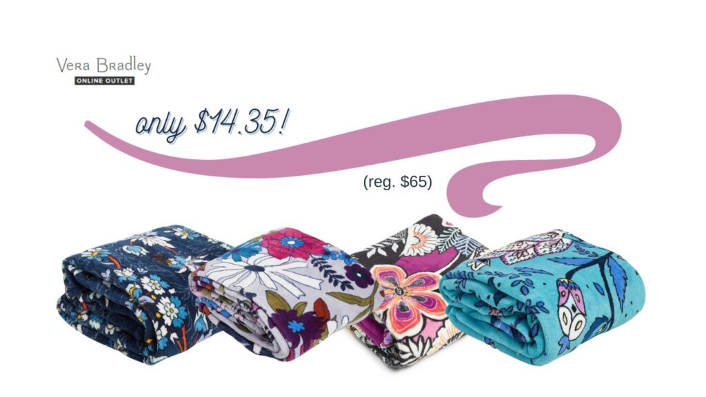 Curl up with something cozy and colorful! Select fleece throws by Vera Bradley are currently on sale at the Vera Bradley Outlet for just $14.35 (reg. $65)!
