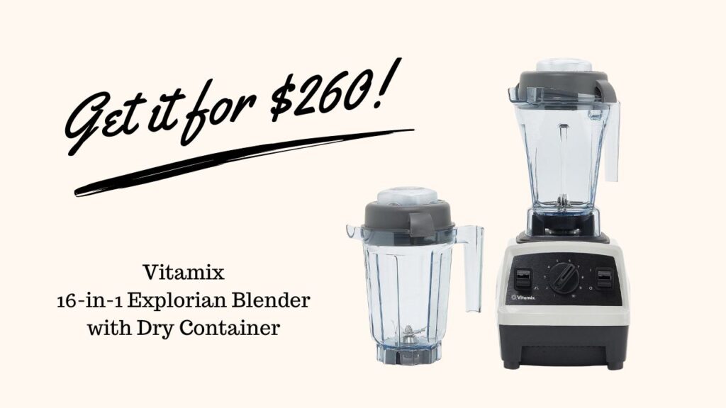Right now head over and get the Vitamix Explorian 2.0 Blender with accessories for only $269.98 (regularly $379).