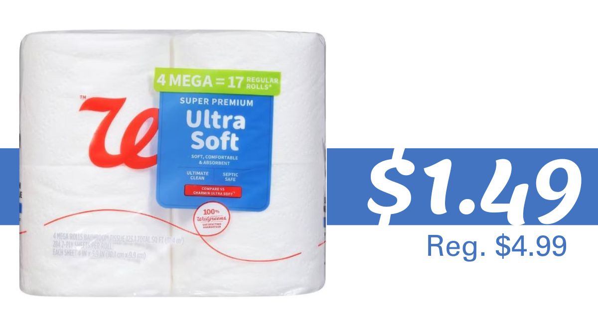 Get a good deal on bath tissue right now at Walgreens. They have their Walgreens Brand Premium Bath Tissue 4 pack on sale for $1.99, regularly $4.99.