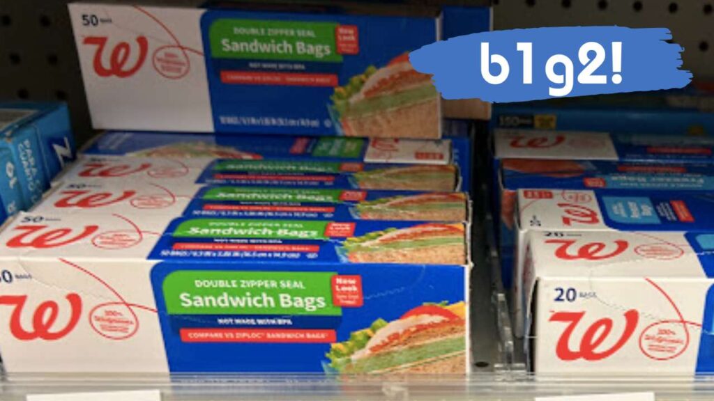 This great stock-up deal is back at Walgreens! Pick up sandwich/freezer bags from Complete Home or Walgreens brands for Buy One, and Get TWO FREE.