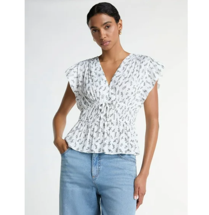 Scoop Women’s V Neck Satin Top with Flutter Sleeves – $24.00