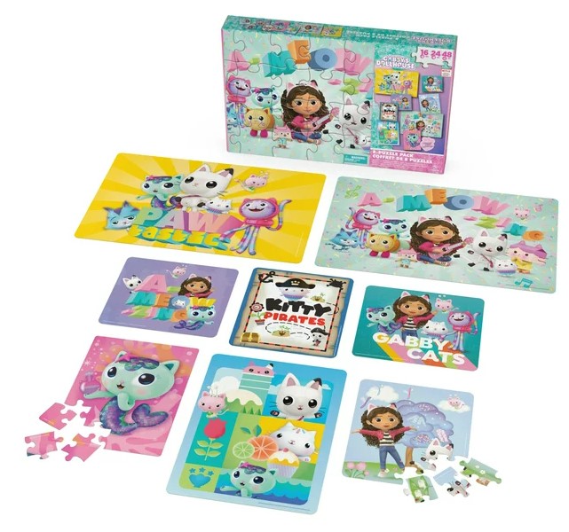 Gabby’s Dollhouse, 8-Puzzle Pack 16-Piece 24-Piece 48-Piece Jigsaw Puzzles – $10
