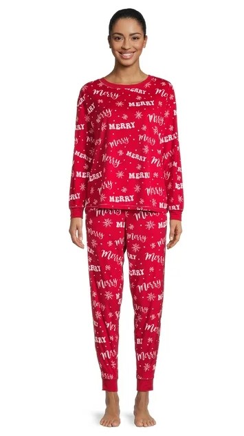 Holiday Time Women’s Merry Christmas Pajama Set, 2-Piece, Sizes S-3X – $10