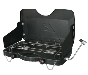 This stove has 2 burners and runs on propane. It can be closed and carried with a handle to any adventure your hungry heart desires!