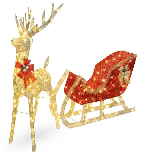 Lighted Christmas 4ft Reindeer & Sleigh Outdoor Yard Decoration Set – $119.99 (reg. $230)