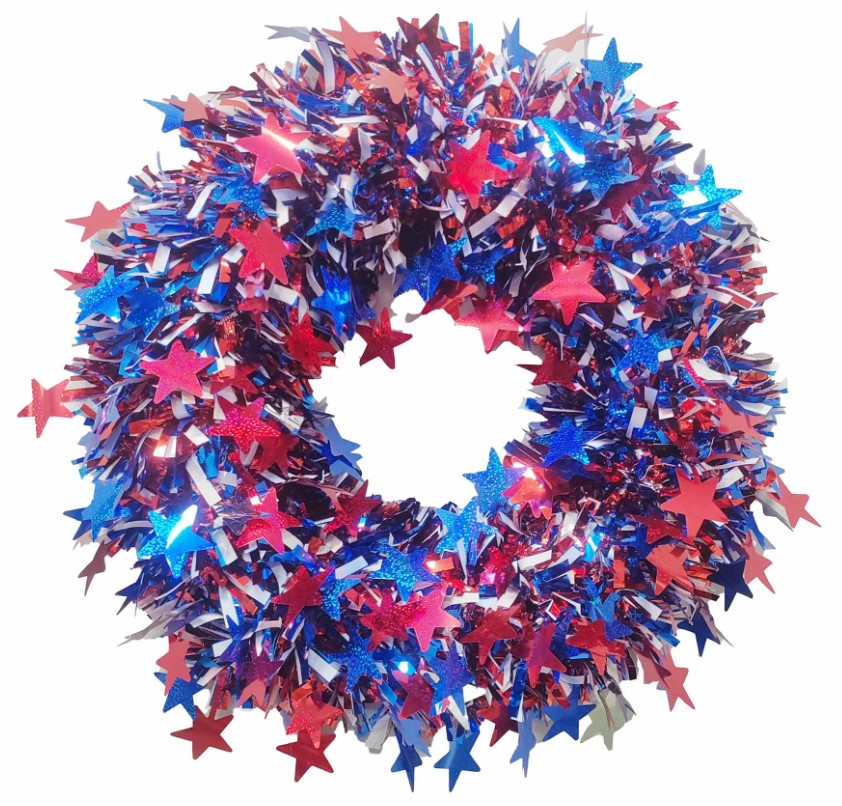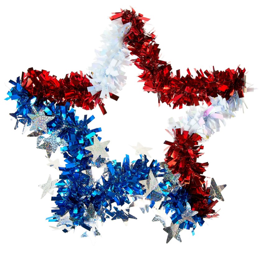 Patriotic Red, White & Blue Star Tinsel Wreath, 13.75 in – $2.98