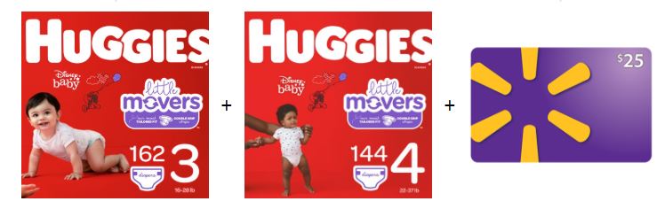 Walmart has Huggies Diaper bundle packs on sale right now and each comes with a $25 Walmart gift card!
