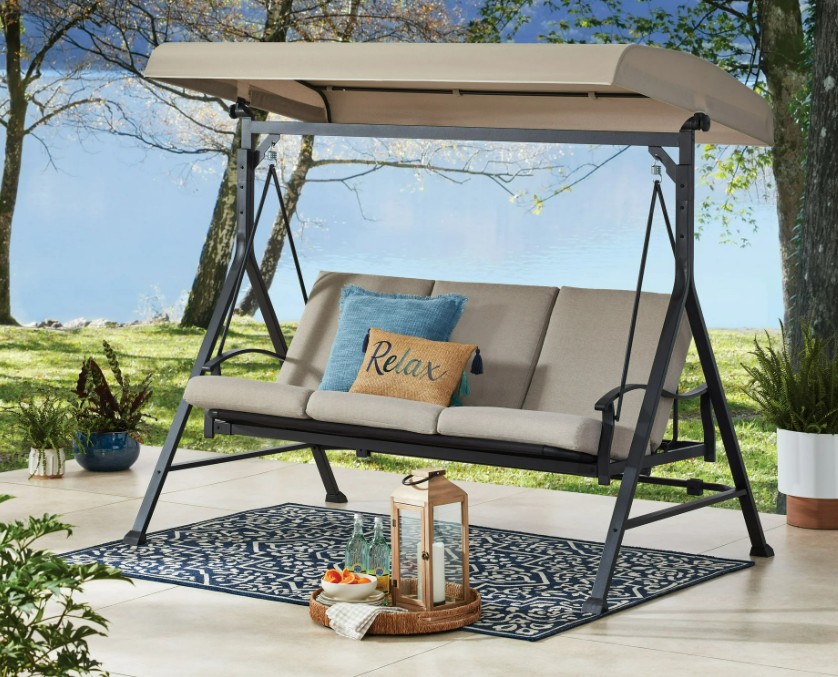 Mainstays Belden Park 3 Person Convertible Daybed Outdoor Steel Porch Swing with Canopy – $187 (reg. $247)