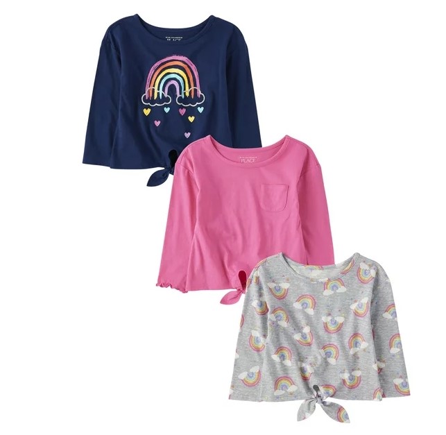 The Children’s Place Toddler Girls Long Sleeve 3-Pack Tie Front Tops, Sizes 2T-5T – $10.05 (reg. $37.50)