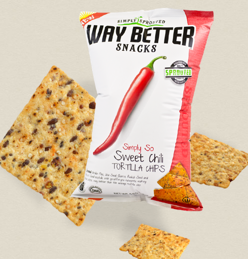 Way Better Snacks aren’t just gluten free, they have a ton science behind them making them possibly one of the healthiest chips we’ve ever tried. The biggest part to them is that they are “sprouted” meaning that they contain flax seed and other nutrients but the seeds are sprouted before adding them into the chips. You may not realize it but when you eat flax seed or other seeds generally the seeds go right through you with no benefit to your body. It’s nature’s way of making sure that seeds can still grow into plants even if animals eat them. Way Better Snacks actually starts the sprouting process in their snacks to unlock all the vitamins, proteins and other benefits that are inside the seeds!
