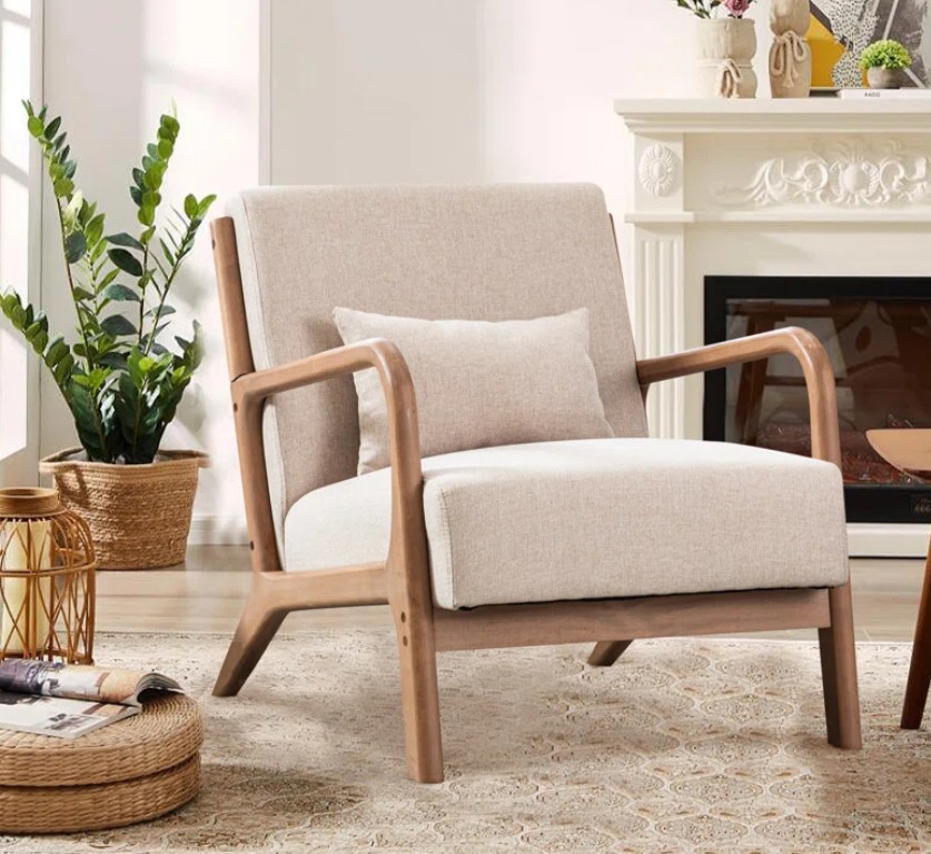 Hertford 26″ Wide Upholstered Linen Blend Accent Chair with Pillow – $135.99 (reg. $384)