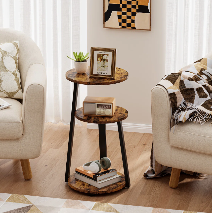 Vernestine Round End Table Side Table with 3-Tier Shelves – $49.99 (reg. $89.99)
