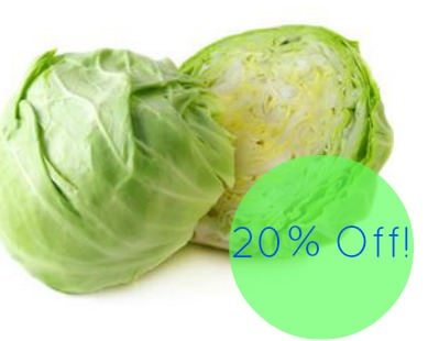 Green Cabbage, 29¢ lb (at Publix), 49¢ lb (at Bi-Lo), 59¢ (at Food Lion)