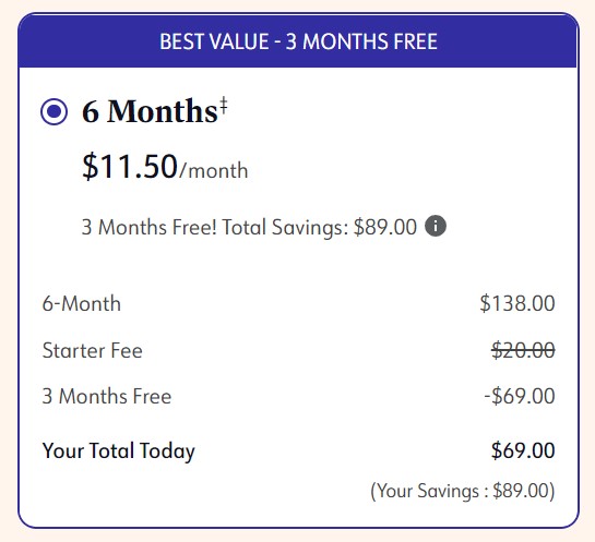 Build a healthier lifestyle at a healthier price. Save over 50%! Regularly sold for $138 + $20 starter fee, you can now join for just $69 + starter fee waived! That’s a total savings of $89 (or 3 free months)!