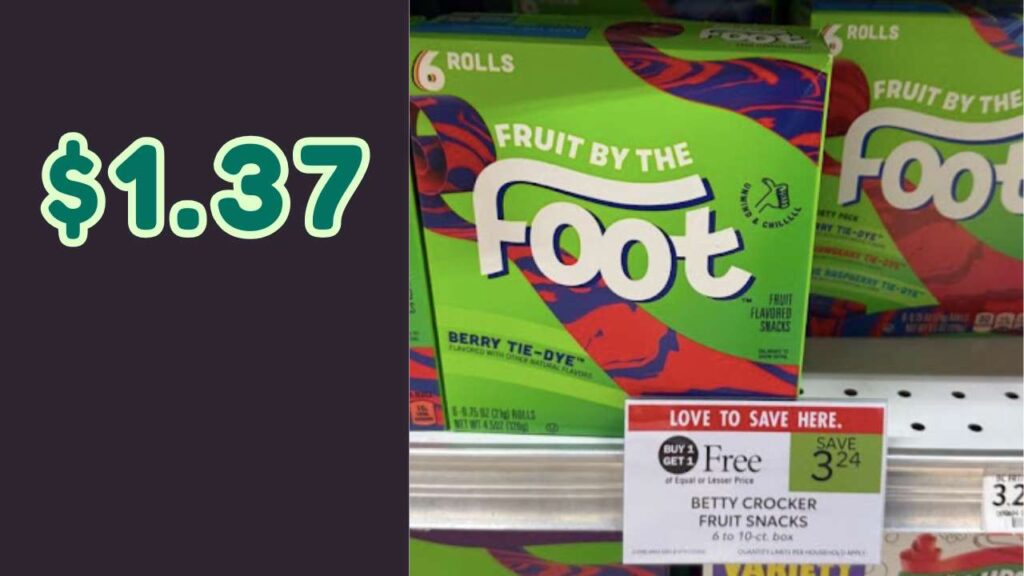- Betty Crocker Fruit Snacks, 6-10 ct, B1G1 at $3.24 ($1.62)