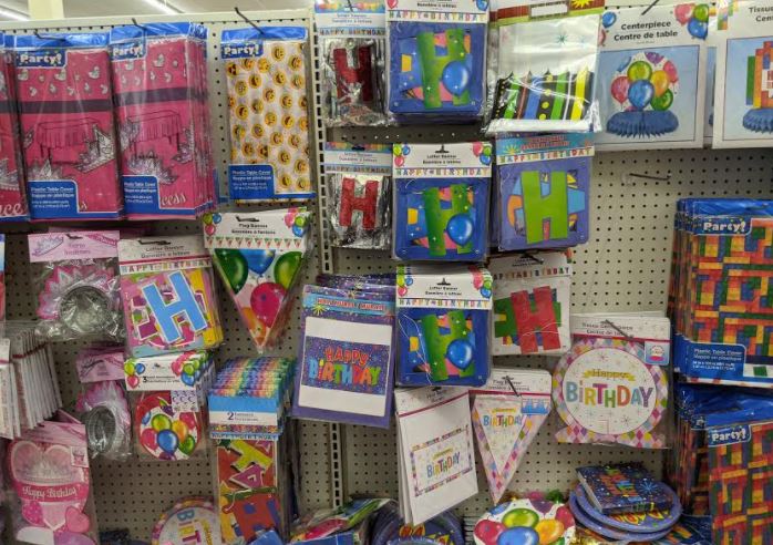 Party Supplies- Don’t miss the table cloths, streamers, paper cups and plates plus the helium filled balloons add a nice touch too. These supplies will be much cheaper than the party store, and they have a pretty good selection too. Keep in mind, the vases and decorative bowls can make great centerpieces.