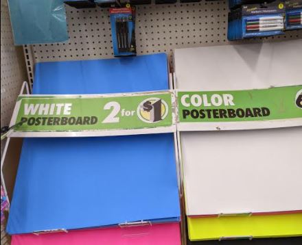 Poster Board- Not only can use grab school supplies like marker and pens, but the poster board is a great deal for school projects, etc and it’s 2 for $1.