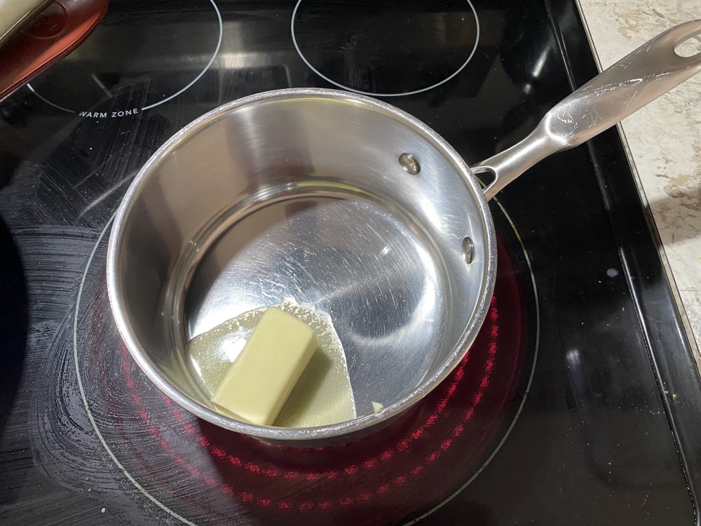 - Melt 4 tbsp. butter in a saucepan over medium heat.