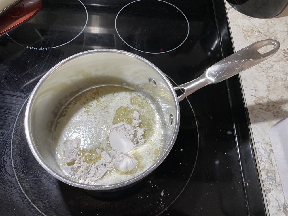 Once the flour and butter have mixed together and are starting to brown a bit, it will look like this.