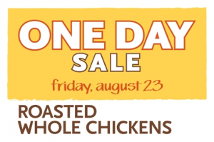 whole foods one day sale 8/23Attention Whole Foods shoppers! Another Whole Foods One Day Sale is running on Friday, 8/23. Get an antibiotic and hormone-free Roasted Whole Chicken for $5!