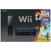 If you are looking for a Wii here is a great deal! You can get a black Wii with New Super Mario Bros, a Super Mario Galaxy soundtrack CD, a black Wii Remote Plus controller and a black Nunchuk controller for $134.99 from Dell.  The item should be in the boxes if you scroll down, or search for item A5523618.