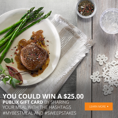 - NO PURCHASE NECESSARY. Void where prohibited. Publix #MyBestMeal Sweepstakes is sponsored by Conopco, Inc., d/b/a Unilever. Open to legal U.S. residents, residing in AL, FL, GA, NC, SC and TN, 18 & older. Begins 12:00 p.m. ET on 12/2/16 & ends 11:59 p.m. ET on 12/30/16. For official rules, visit http://www.bestmealsathome.com/official-rules.