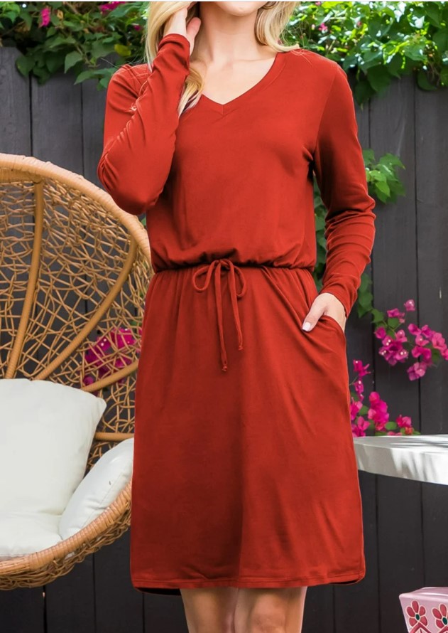 Solid Long Sleeve Cinch Waist Pocket Dress | S-3X – $9.99 (reg. $40)