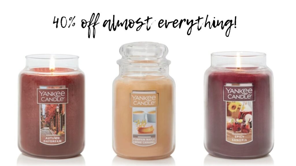 Grab new fall scents at Yankee Candle while they are offering 40% off all regular-priced items. This makes large jar candles only $18.60 (reg. $31)!