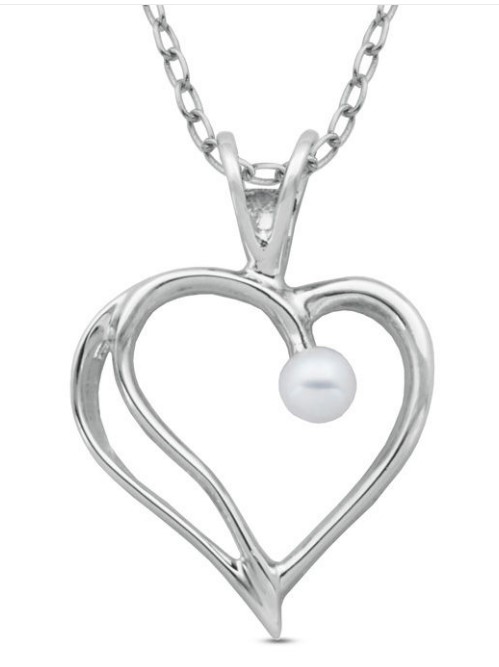 Cultured Freshwater Pearl Heart Pendant in Sterling Silver – $39