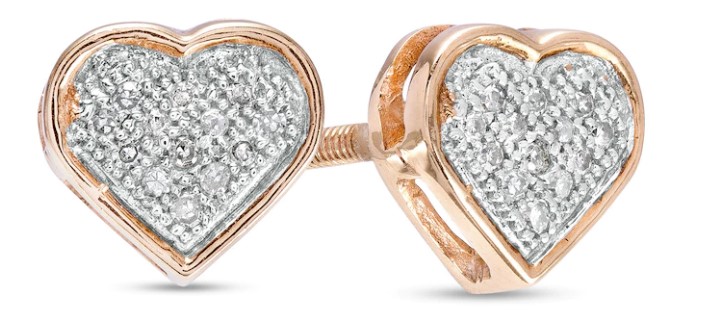 Diamond Accent Pavé Heart Stud Earrings in 10K Gold – $199