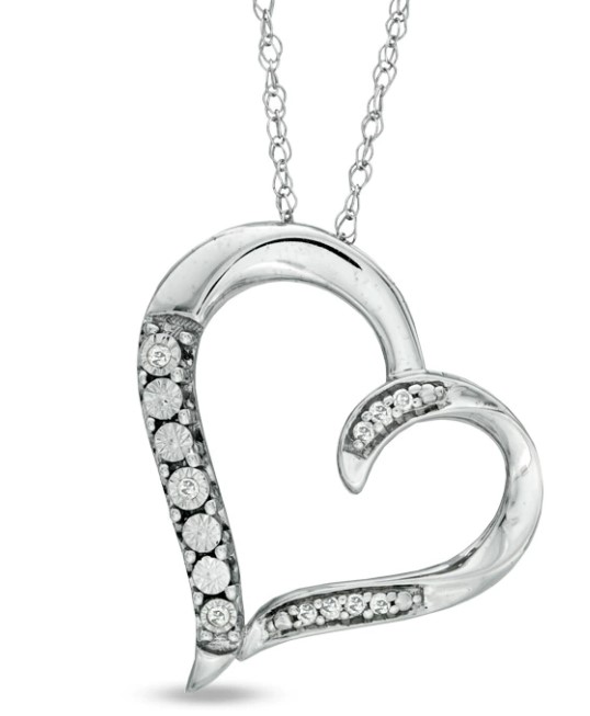 Diamond Accent Tilted Curvy Heart Pendant in Sterling Silver – $139